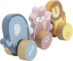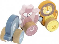 Slon, liška a lev propojené do malé soupravy rozvíjejí představivost a vybízejí k tvořivé hře.