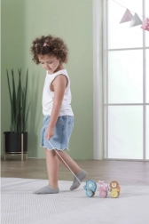 Hračka je vyrobena z odolného, lakovaného dřeva a barvena netoxickými barvami bezpečnými pro děti. Hladké hrany a příjemná velikost jsou ideální do malých dětských rukou. Při společné i samostatné hře děti trénují kreativitu, jemnou motoriku a představivost.