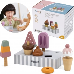 Sada 5 dřevěných nanuků v lákavých barvách přináší dětem nekonečnou porci zábavy. Nanuky jsou umístěné na stabilním dřevěném stojánku, který slouží k vystavení i přehlednému ukládání. Vše je vyrobeno z kvalitního dřeva a malováno bezpečnými, netoxickými barvami.
