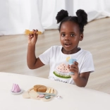 Barevné kousky jídla, dezert i nápoj umožní dětem servírovat oběd jako doopravdy a trénovat základy stolování.