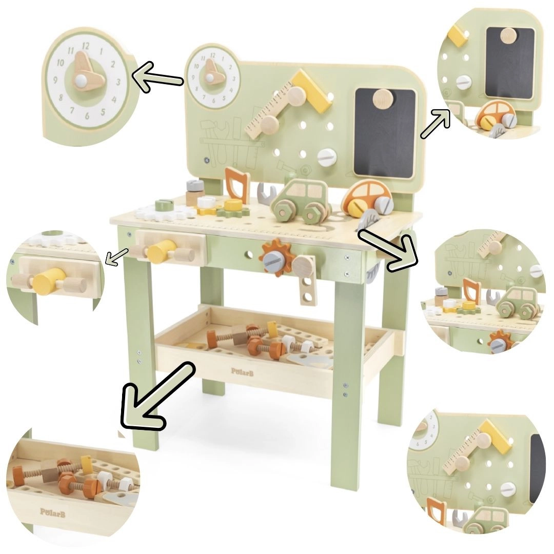 Objevte robustní a stylový ponk Viga PolarB, který je navržen pro malé kutily od 3 let. Díky dřevěné konstrukci, plynule se otáčejícím ozubeným kolům a bohatému příslušenství děti trénují koordinaci ruka–oko a učí se řešit úkoly hrou. Bezpečné materiály a promyšlené detaily zaručují dlouhou životnost i pohodlné skladování součástek.