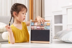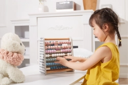 Barevné korálky a překlápěcí kostky s čísly motivují děti k objevování základů matematiky přirozenou a zábavnou formou.