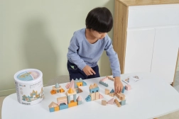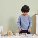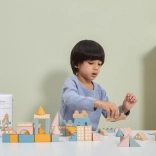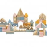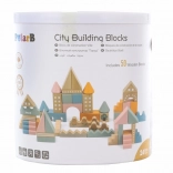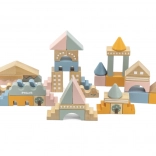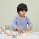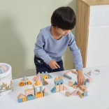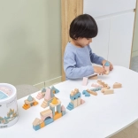 Tato kvalitní dřevěná stavebnice v kyblíku nabízí 50 pečlivě zpracovaných dílků v příjemných pastelových barvách. Děti si s ní postaví domečky, věžičky i celé město a zároveň rozvíjejí koordinační schopnosti, logické myšlení a kreativitu.