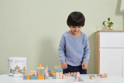 Rozmanité tvary a velikosti (cca 2,5–9 cm) umožní dětem tvořit domy, věže i celé město a trénovat prostorové vnímání.