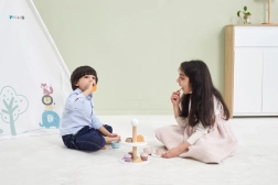 Elegantní dvoupatrový stojan pojme všechny dortíky a vytváří realistickou scénu pro čajový dýchánek. Děti si hravě procvičí jemnou motoriku při aranžování.
