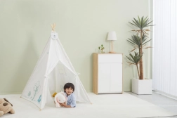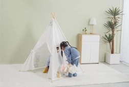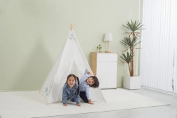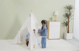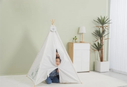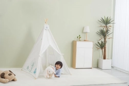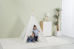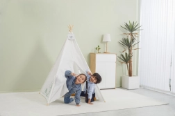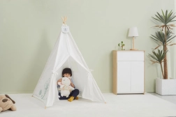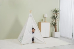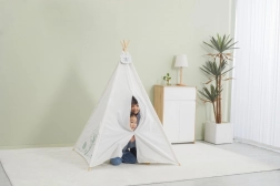 Teepee stan POLARB promění každý pokoj v kouzelné místo plné fantazie. Minimalistický design v bílé barvě s milými zvířecími motivy zapadne do moderního interiéru a vytvoří dětem klidný, inspirativní prostor. Pevná konstrukce s dřevěnými tyčemi zajistí stabilitu při hraní a snadno jej postavíte i složíte.