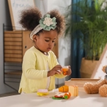 Děti si mohou hrát, že vaří nebo nakupují, což je skvělý způsob, jak je učit o zdravém stravování a nakupování potravin. Sada podporuje jemnou motoriku a kreativní hru v bezpečném a přívětivém prostředí.