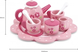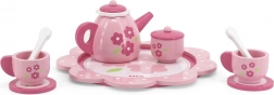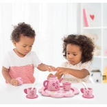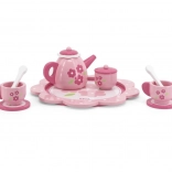 Set obsahuje vše potřebné k hraní na čajové dýchánky: čajník, džbánek, cukřenku, šálky, podšálky, lžičky a tác.