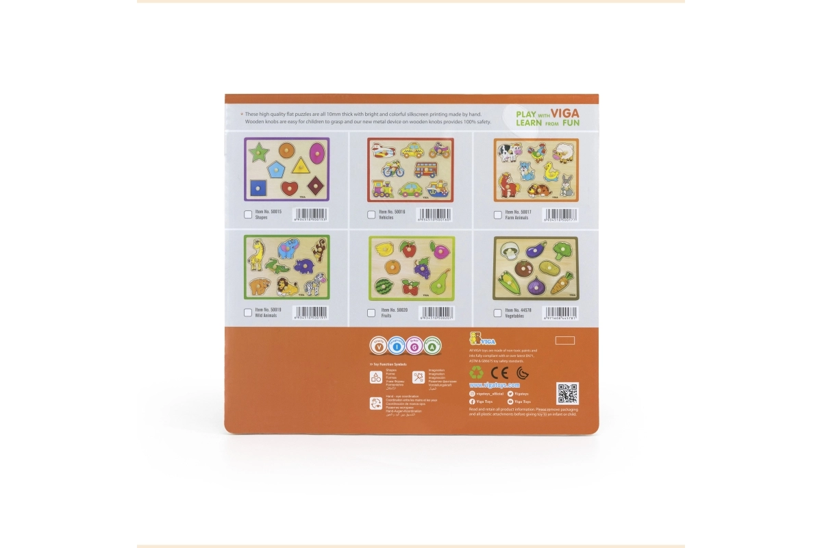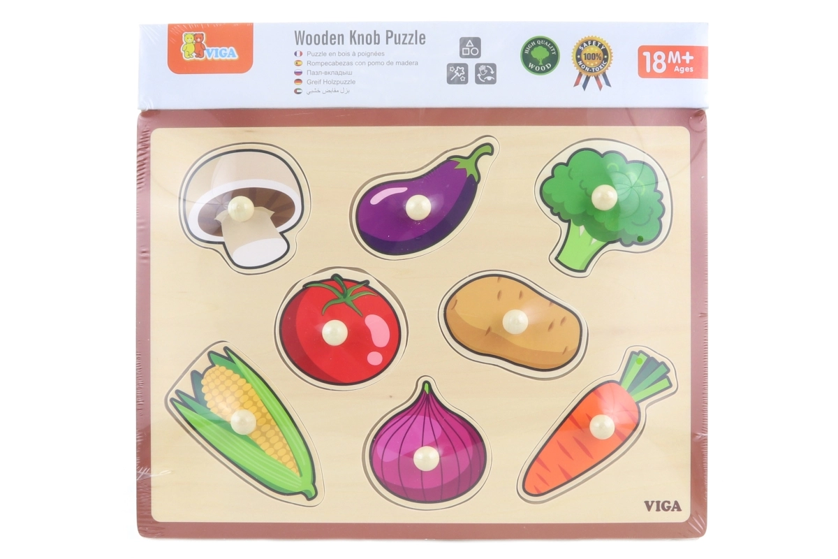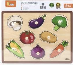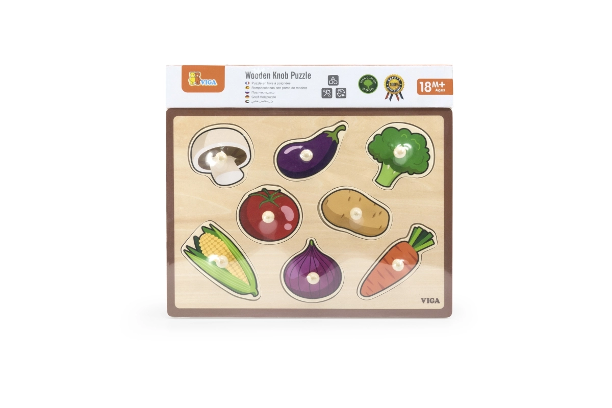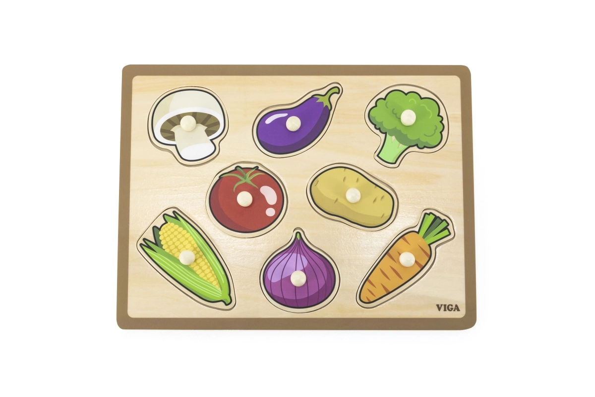 Dřevěná vkládačka se zeleninou je skvělou volbou pro první vzdělávací hračky. Děti se zábavnou formou učí rozpoznávat tvary, barvy a jednotlivé druhy zeleniny. Pevná dřevěná deska s výřezy a hladce opracované dílky jsou přizpůsobené drobným dětským rukám.