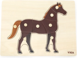 Montessori vkládačka s realistickým motivem koně vede děti k samostatnému objevování a soustředění. Pomocí praktických úchytů snadno uchopí jednotlivé dílky, učí se rozpoznávat tvary a trénují přesnost pohybů. Díky kontrastu přírodního dřeva a hnědého koníka jsou obrysy jasně čitelné a lákají ke hře.