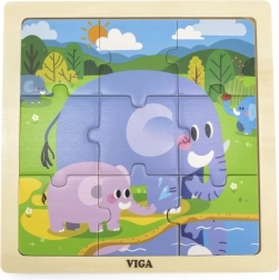 Klasické dřevěné puzzle s veselým motivem slonů jsou ideální první skládankou pro nejmenší. Pevné dílky se snadno uchopují a skládají do přiložené desky, která pomáhá s orientací a udržuje obrázek pohromadě.