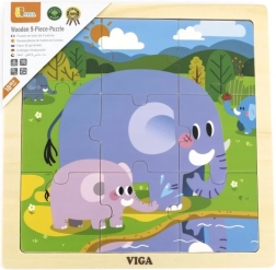 Roztomilé dřevěné puzzle se slony potěší malé stavitele od 18 měsíců. 9 dílků na pevné dřevěné desce o rozměru 22 × 22 × 1 cm podporuje jemnou motoriku, koordinaci a první logické myšlení.