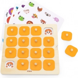 Robustní dřevěná základna s krytkami na kolíčcích podporuje jemnou motoriku a koordinaci ruka–oko. Ilustrace pokrývají zvířata, rostliny i předměty denní potřeby, čímž přirozeně rozšiřují poznávání světa. Ideální pro individuální i skupinovou hru doma i v mateřských školách.