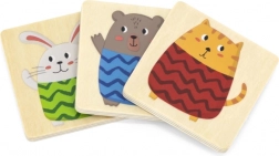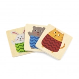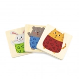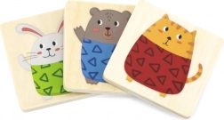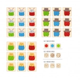 Díky pevným dřevěným žetonům a preciznímu zpracování je hra odolná a příjemná na dotek. Barevné motivy zvířátek pomáhají rozvíjet zrakové vnímání, koncentraci a jemnou motoriku.
