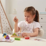 Dřevěná základna s kolíčky, 8 dílků, karty s předlohami