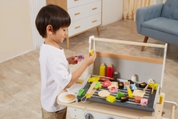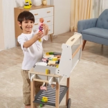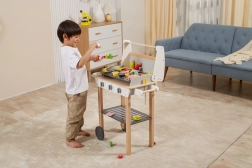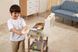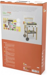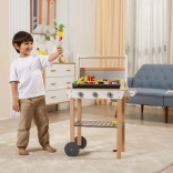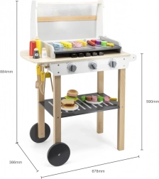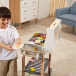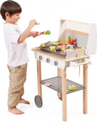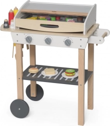 Dětský gril VIGA přináší autentický zážitek z grilování v bezpečné, kvalitní a stabilní dřevěné konstrukci. Děti si mohou připravit špízy, burgery, hotdogy či sendviče a obsluhovat „hosty“ jako na skutečné zahradní párty. Otočná tlačítka s klikacím efektem, odnímatelná poklice a výsuvný rošt podporují realistickou hru a rozvoj zručnosti.