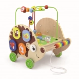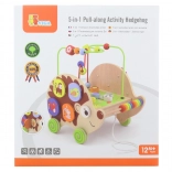 Tato multifunkční tahačka v podobě ježka od VIGA spojuje oblíbené vzdělávací prvky do jednoho chytrého hracího centra. Děti baví posouvat korálky v kuličkovém labyrintu, točit ozubenými koly, procházet labyrint se zvířátky, zkoušet počítání a objevovat naučné otočné prvky. Pestrobarevné provedení přirozeně láká k objevování a podporuje soustředění.