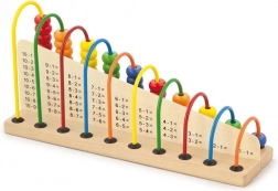 Tato kompaktní dřevěná pomůcka na počítání přináší dětem radost z objevování čísel a jednoduchých matematických operací. Na dřevěné destičce jsou uvedeny příklady a dítě přiřazuje správný počet korálků na kovových obloucích. Díky intuitivnímu principu se děti přirozeně učí rozpoznávat čísla, počítat a chápat vztah mezi příkladem a výsledkem.