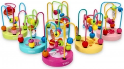 Hračka je vyrobena z odolného dřeva a kovu a je natřena bezpečnými, zdravotně nezávadnými barvami. Ideální pro děti od 12 měsíců. Každý kus obsahuje přibližně 12 korálků ve dvou tvarech a výrazných barvách, které podporují rozpoznávání barev a tvarů. Cena je za 1 ks; konkrétní barva a motiv se zasílají náhodně.
