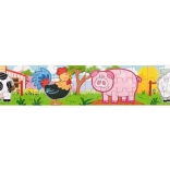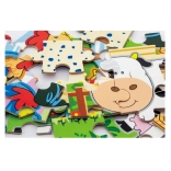 Tento barevný set dřevěných puzzle s roztomilými zvířátky z farmy potěší každé zvídavé dítě. Velké a pevné dílky se dobře drží v malých ručičkách a díky jasným ilustracím se děti snadno orientují při skládání. Z puzzlí lze sestavit 4 jednotlivé obrázky nebo je propojit do jednoho dlouhého obrazu celé farmy.