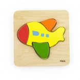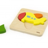Dřevěné puzzle Viga Letadlo jsou ideální volbou pro první skládání doma i v mateřské škole. Díky čtyřem barevným, robustním dílkům si děti rychle osvojí princip přiřazování tvarů do příslušných prohlubní. Kvalitní zpracování, hladké hrany a netoxické barvy zaručují bezpečnou hru.