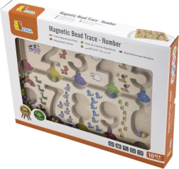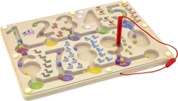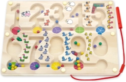 Vstupte do světa učení a zábavy s Magnetickým Bludištěm - Čísla. Tato dřevěná deska vybavená číslicemi a pestrobarevnými korálky nabízí skvělý způsob, jak děti mohou rozvíjet své matematické dovednosti a jemnou motoriku.
