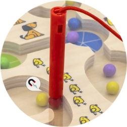 Obsahuje magnetické pero pro snadné přemisťování korálků po dráhách, což pomáhá rozvíjet jemnou motoriku.