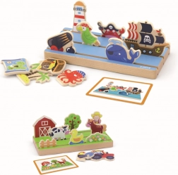 Tato zábavná a vzdělávací skládačka pomáhá dětem pochopit prostorové vztahy a podporuje jejich kognitivní rozvoj. Děti mohou skládat různé scény na vícevrstvé destičce, která nabízí farmářské i mořské dobrodružství.
