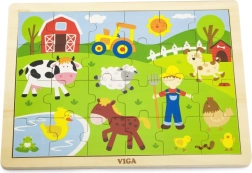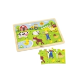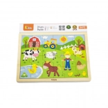 Toto dřevěné puzzle s farmářským motivem je ideální pro děti, které se právě seznamují se světem skládání a hlavolamů. Obrázkové ztvárnění farmy je barevné a atraktivní, lákající ke hře a učení. Puzzle lze