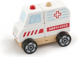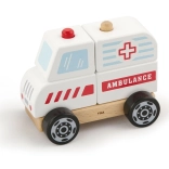Tato dřevěná sanitka je skvělou kombinací skládačky a pojízdného autíčka. Děti mohou jednotlivé díly sestavit do podoby sanitky a poté si užít jízdu díky hladce se otáčejícím kolečkům. Robustní dřevo, kvalitní barvy a zaoblené hrany zajišťují bezpečné hraní a dlouhou životnost.