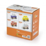 Dílky s potiskem oken, pruhu a kříže děti snadno zasazují na podvozek. Podporují jemnou motoriku, trpělivost a prostorové vnímání.