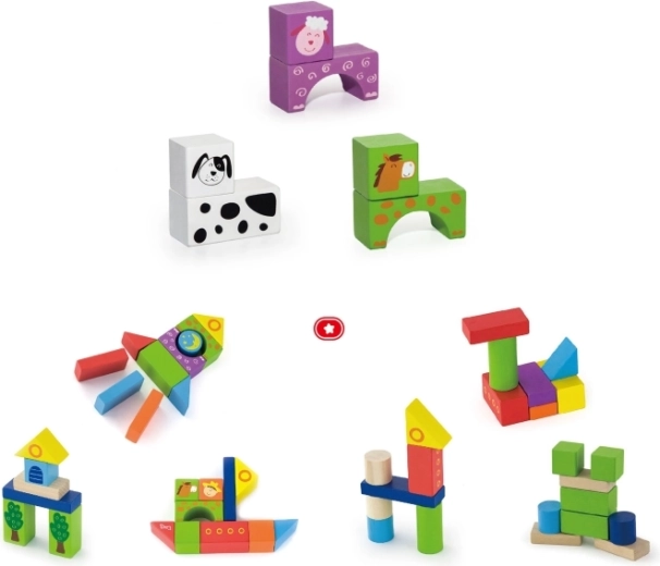 Tato barevná dřevěná stavebnice s farmářským motivem nabízí 50 kvalitních dílků pro nekonečné hodiny zábavy. Děti mohou stavět domečky, ohrady či jednoduchá vozidla a rozvíjet tak prostorovou představivost, koordinaci oko–ruka a trpělivost. Díky přiložené brožuře s návody ve 3 obtížnostech si na své přijdou začátečníci i pokročilí stavitelé.