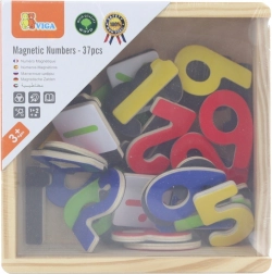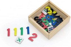 Obsahuje 37 dílků – číslice a matematické symboly – které se díky magnetické vrstvě spolehlivě přichytí na tabuli či lednici. Robustní, vícevrstvá dřevěná konstrukce a hladké lakované povrchy zajišťují dlouhou životnost i pohodlné držení pro malé ruce.