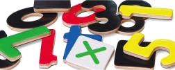 Kompletní sada číslic a symbolů pro první počítání, skládání příkladů a rozvoj rané matematiky.