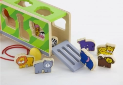 Tento barevný dřevěný kamion spojuje tahačku a vkládačku 2v1. Děti vozí kamion na provázku a zároveň vkládají zvířátka do odpovídajících otvorů, čímž trénují trpělivost, logiku a obratnost prstíků. Hladce opracované hrany a odolné provedení jsou jako stvořené pro každodenní hraní.