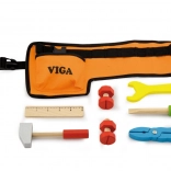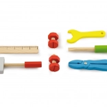 Opasek s dřevěným nářadím (obsahuje kladívko, klíč, šroubovák, metr, šroubky a matice, kleště). Rozměry opasku cca 36 x 18 x 2,5 cm. Rozměry balení cca 27 x 21 x 5 cm. Věk 3+