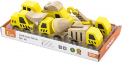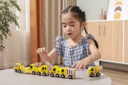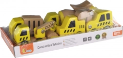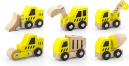 Tato kvalitní sada obsahuje 6 různých stavebních vozidel v jasné žluté barvě s přírodními dřevěnými prvky – ideální pro první závody po podlaze i hraní na staveniště. Díky zaobleným tvarům a odolné dřevěné konstrukci jsou autíčka bezpečná a příjemná na dotek.