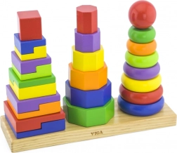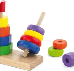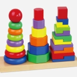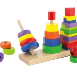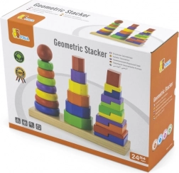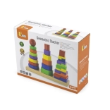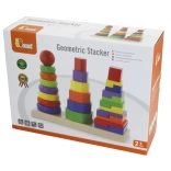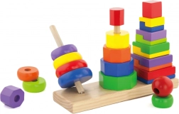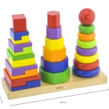 Dřevěná skládačka pyramida je ideální hračkou pro děti od 2 let, která podporuje rozvoj motoriky a rozpoznávání tvarů díky barevným geometrickým dílkům.