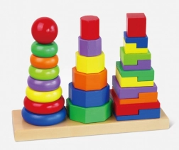 Dřevěná skládačka pyramida nabízí zábavu i vzdělávání pro nejmenší. Je navržena tak, aby podporovala vývoj dítěte pomocí: