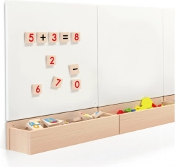 Tato sada magnetických dřevěných čísel je skvělým nástrojem pro interaktivní učení matematiky. Díky magnetům mohou děti snadno sestavovat a rozkládat jednoduché rovnice na jakémkoliv magnetickém povrchu.