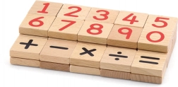 Magnetická dřevěná čísla představují ideální pomůcku pro učení základních aritmetických dovedností dětí od 3 let. Sada obsahuje 40 kusů magnetů s čísly a symboly, které umožňují snadné skladování v praktickém textilním pytlíku.