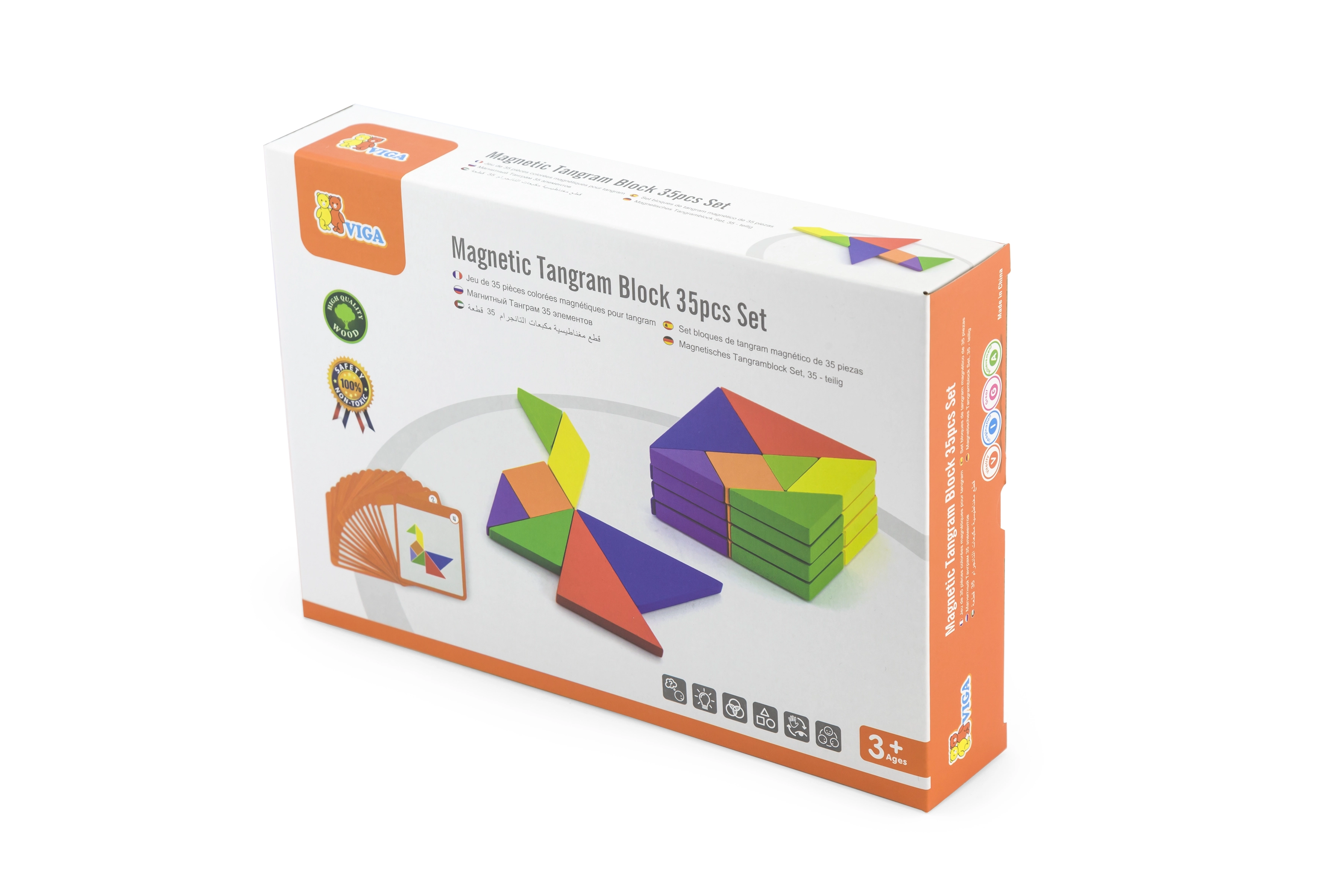 Dřevěný tangram VIGA s kartičkami – vzdělávací skládačka z FSC dřeva