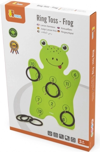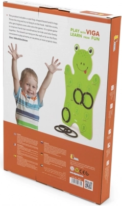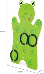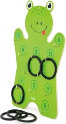 Součástí je dřevěná deska ve tvaru žáby a 6 kroužků – stačí rozbalit a začít házet.