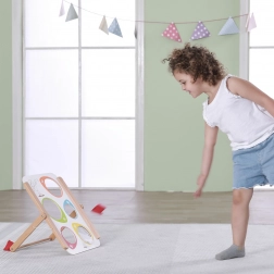 Dřevěná hra na házení na cíl od Viga nabízí zábavu i vzdělávací přínos. Je ideální jak pro domácí použití, tak pro venkovní aktivity. Celá hra je vyrobena z lakovaného dřeva a malována netoxickými barvami, což zaručuje dlouhotrvající radost ze hry bez zdravotních rizik. Skvěle rozvíjí dětské schopnosti a poskytuje zdokonalení motorické koordinace a koncentrace.
