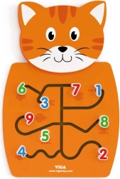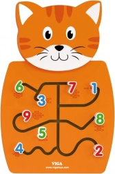 Dřevěná kočka s labyrinty pro pohyb čísly a rozvoj jemné motoriky.
