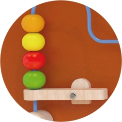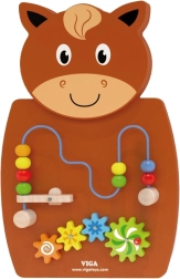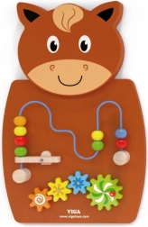 Dřevěná aktivní deska ve tvaru koně je jednou z předních hraček rozvíjejících kreativitu a učení dětí. Je vybavena dřevěnými ozubenými koly a cestou pro korálky na drátku, které mohou děti posouvat pomocí pákového mechanismu. Tato hračka zaujme svou pestrostí barev a tvarů, čímž napomáhá rozvoji schopnosti rozpoznávat barvy a tvary.