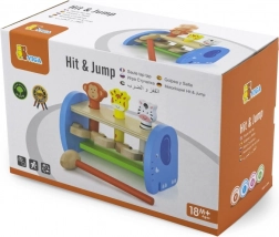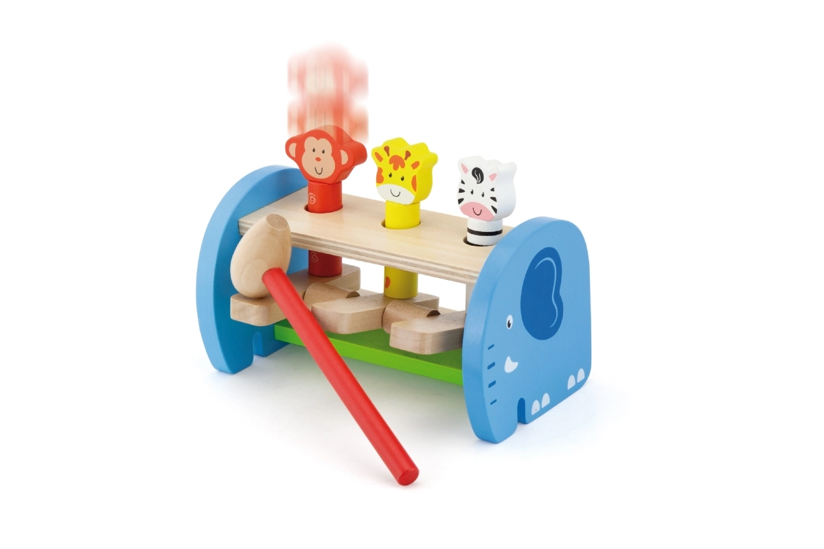 Tato kvalitní dřevěná hračka nabízí bezpečné a barevné hraní s roztomilými zvířátky. Děti pomocí kladívka poklepávají na mechaniku, která zvířátka nechá vyskočit – zdokonalují tak úchop, sílu stisku i přesnost pohybu. Pevná konstrukce a hladké hrany zajišťují bezpečí při každodenním používání.
