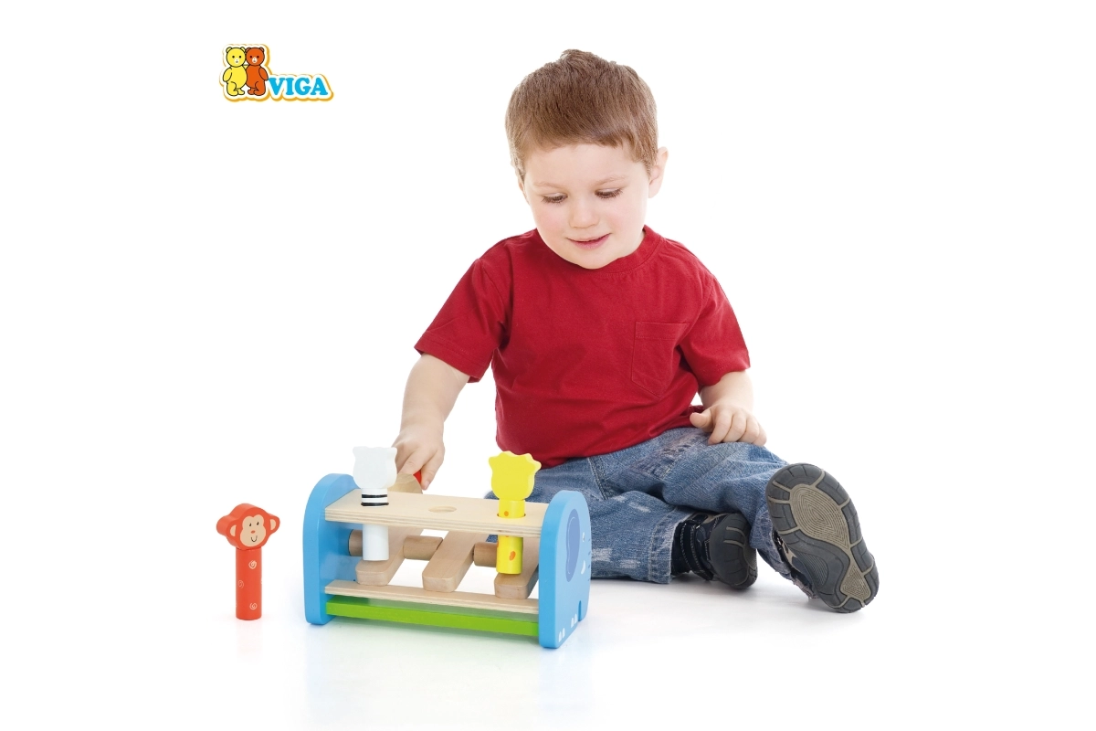Údery kladívkem rozvíjejí úchop, sílu a koordinaci oko–ruka, zatímco princip příčina–následek učí děti logickému myšlení.