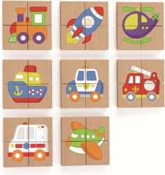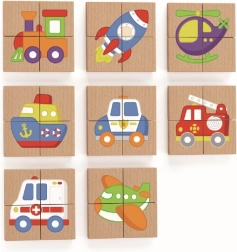Toto puzzle pomáhá dětem rozvíjet jejich logické myšlení kombinací barevných obrázků do kompletních dopravních prostředků.