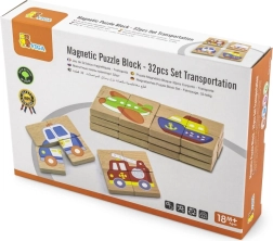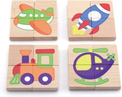 Tato úchvatná magnetická hračka umožňuje dětem skládat obrázky z 4 bloků, které po spojení tvoří kompletní dopravní prostředek. Lze je snadno připevnit na tabuli a stát se tak částí obrazu nebo posloužit jako inspirace pro kreslení. Vysoce kvalitní dřevo a netoxické barvy zajišťují, že hračka je zcela bezpečná pro děti.